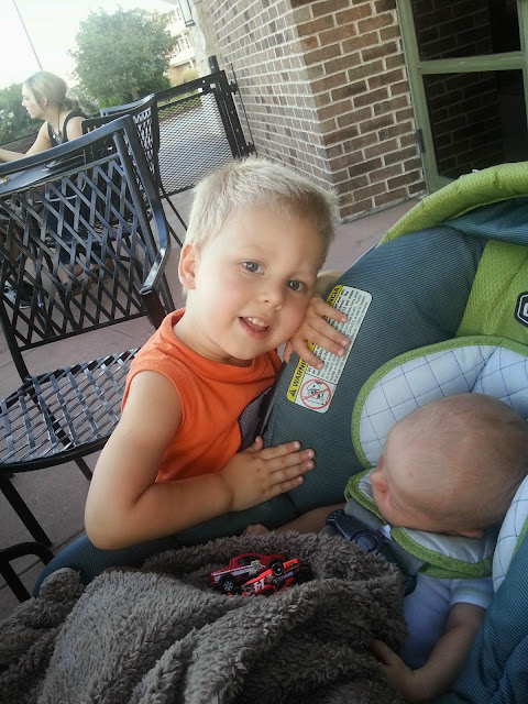 And thus concludes the latest edition of Cooper and Keegan. Life with 2 kids is hectic but we wouldn't change it for anything! While Mommy is a bit sleep deprived, we are blessed that Cooper is a super laid back baby who does pretty great at night...usually! He did have his first poop blow out which ran down mommy's legs, up her shorts, up his back and covered his legs and blanket. We are sure there are more of those to come! Tune back soon as we are going to have MORE visitors this weekend to celebrate Cousin Kynnedy's 2nd birthday!